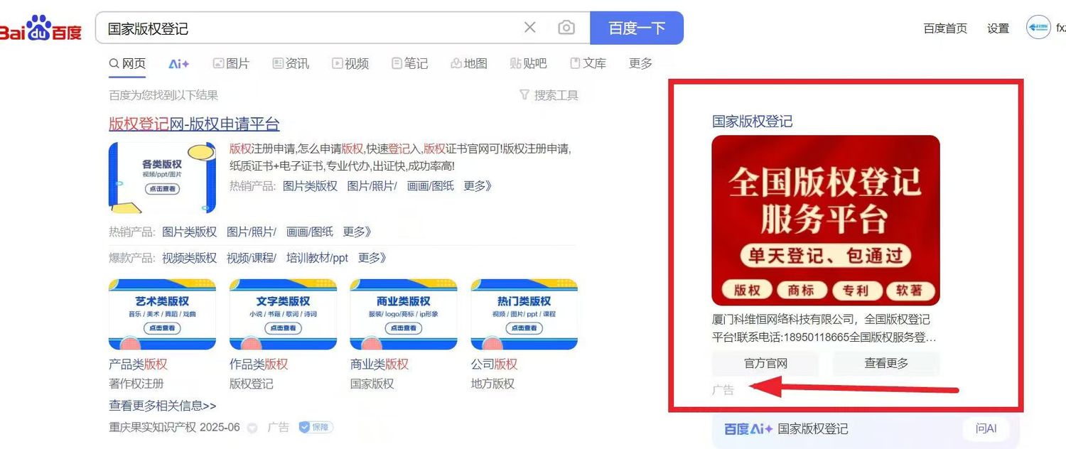 百度右侧独家第一广告